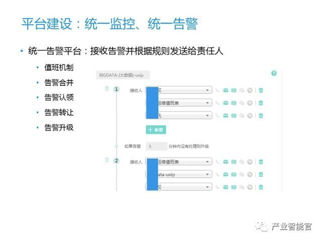 我们开发统一告警平台的目的解决报警遗漏、对非值班人员的打扰以及减少告警疲劳,确保报警/故障/提醒通告等及时、准确、高效地通知到具体人员。通过优化现有报警处理流程,我们引入值班机制、告警升级机制、告警合并收敛规则,做到故障的准确通知。通过统一监控平台和统一告警平台,降低大数据告警设置的难度,同时也提高了运维人员对告警的敏感度。