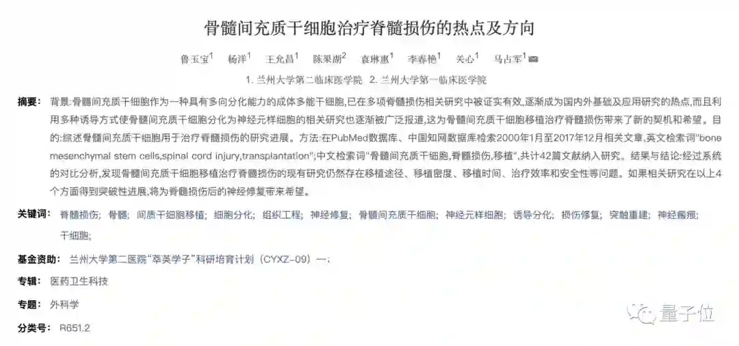 中国知网显示的结果来看,2018年初,鲁玉宝就以一作身份发表了一篇与脊髓损伤相关的文章——《骨髓间充质干细胞治疗脊髓损伤的热点及方向》,并被《中国组织工程研究》收录。