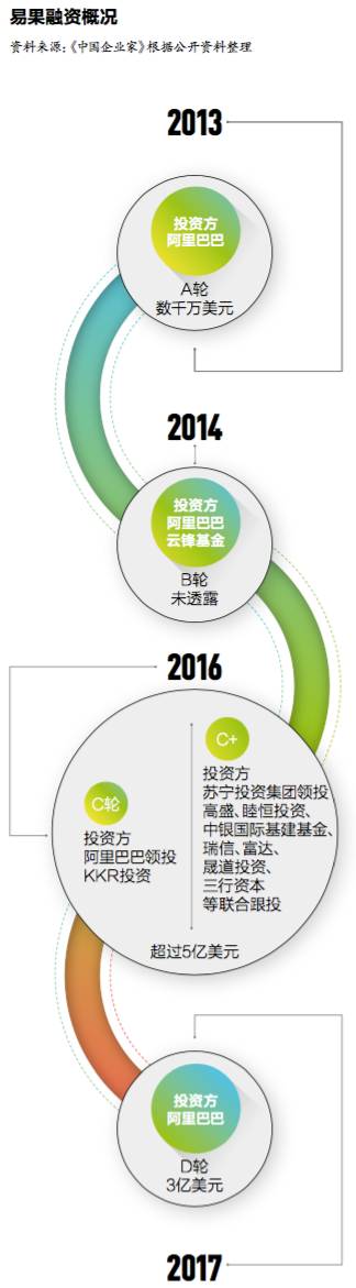 2013年,易果获得阿里巴巴数千万美元A轮投资,开始独家运营天猫超市生鲜。此后,阿里又连续三轮投资易果,二者关系愈来愈紧密。