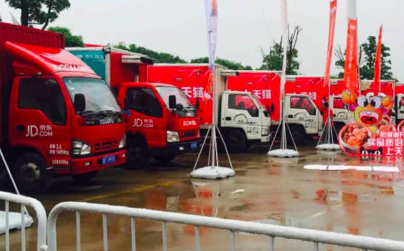 湖岸上的形势略显紧张,天猫、京东、顺丰的物流车依次排开,抢夺大闸蟹的战争已经打响。今年,天猫在阳澄湖畔建立了产地仓,联合菜鸟、安鲜达、EMS等进行极速配送;京东同样设立了分拣中心,采用航空+冷藏车运输;顺丰新增了100多条大闸蟹运输专线,针对泛阳澄湖地区投入了7架全货机。