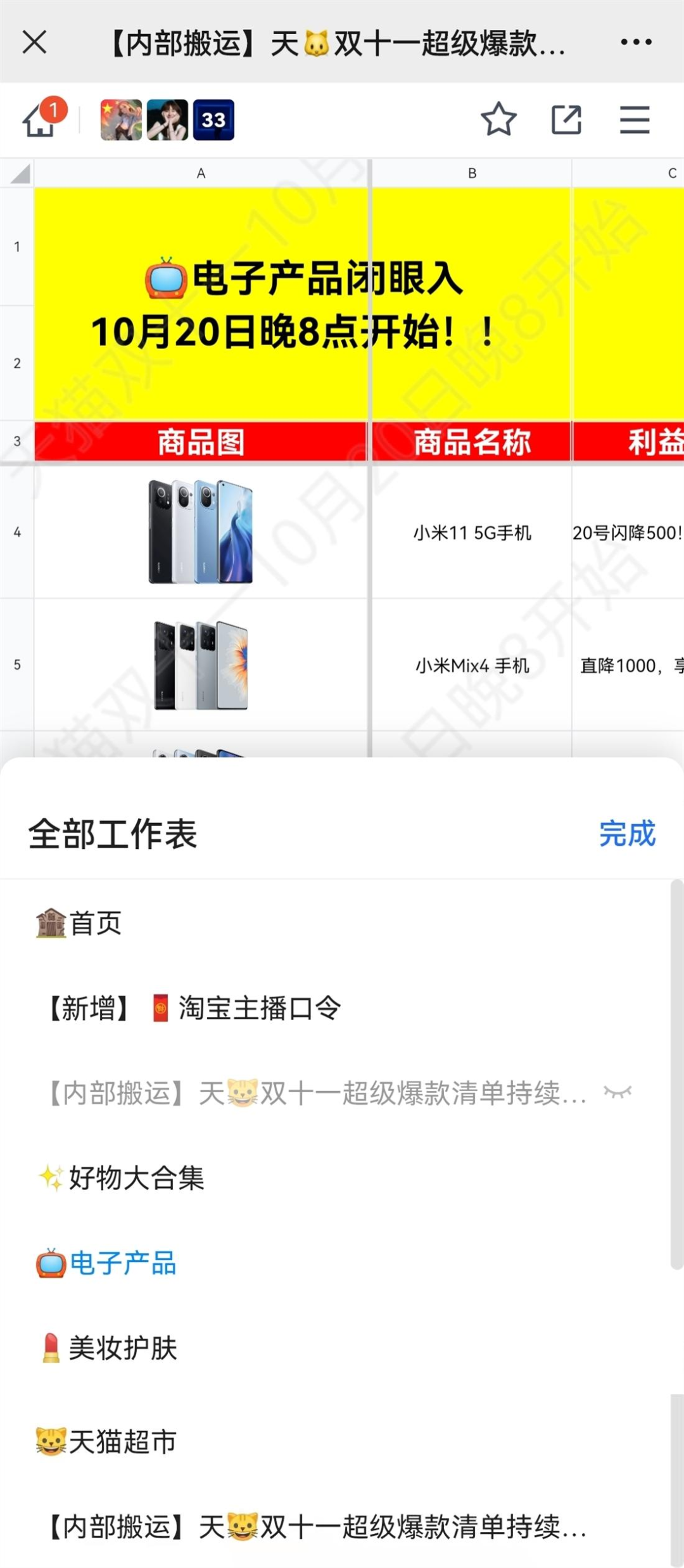 朋友分享给王芝的那份名为“【内部搬运】天猫双十一超级爆款清单持续更新ing”在线Excel文档,直到21日凌晨2:29分,还有86人正在查看。