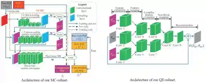 再将补偿后的两个PQF与当前的non-PQF一起输入质量增强子网络(QE-subnet),最终即可得到质量增强后的当前non-PQF。
