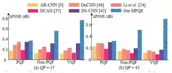 图 5 MFQE算法在PQF、non-PQF和VQF(峰谷质量帧)上的质量提升效果