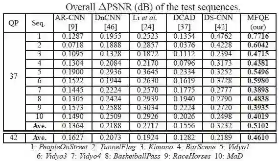 表 3 本文提出的MFQE算法在测试视频上的质量提升效果