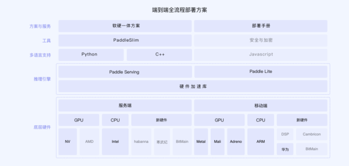 它集深度学习训练和预测框架、模型库、工具组件和服务平台为一体,拥有兼顾灵活性和高性能的开发机制、工业级的模型库、超大规模分布式训练技术、高速推理引擎以及系统化的社区服务等五大优势。