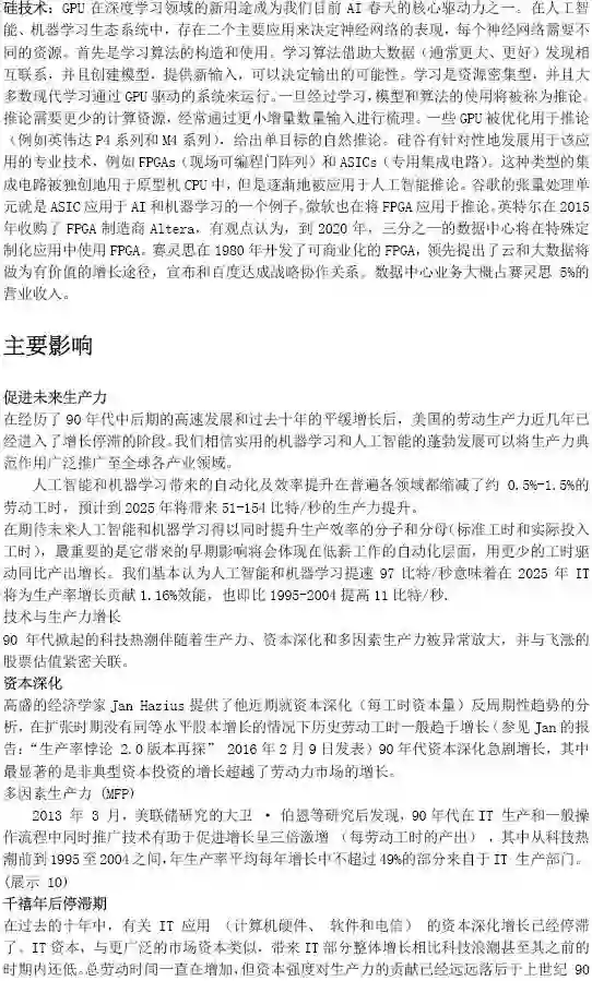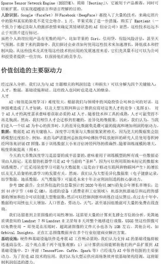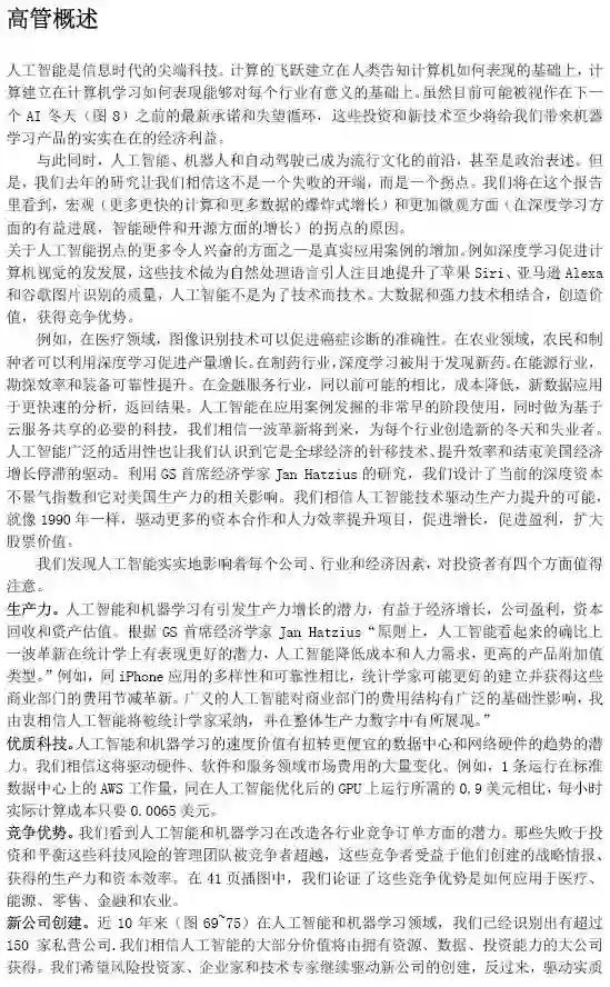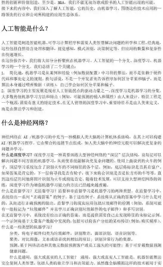 在这份报告中,我们将大部分分析聚焦在机器学习、人工智能的一个分支、深度学习、机器学习的一个分支。我们总结了二个关键点: