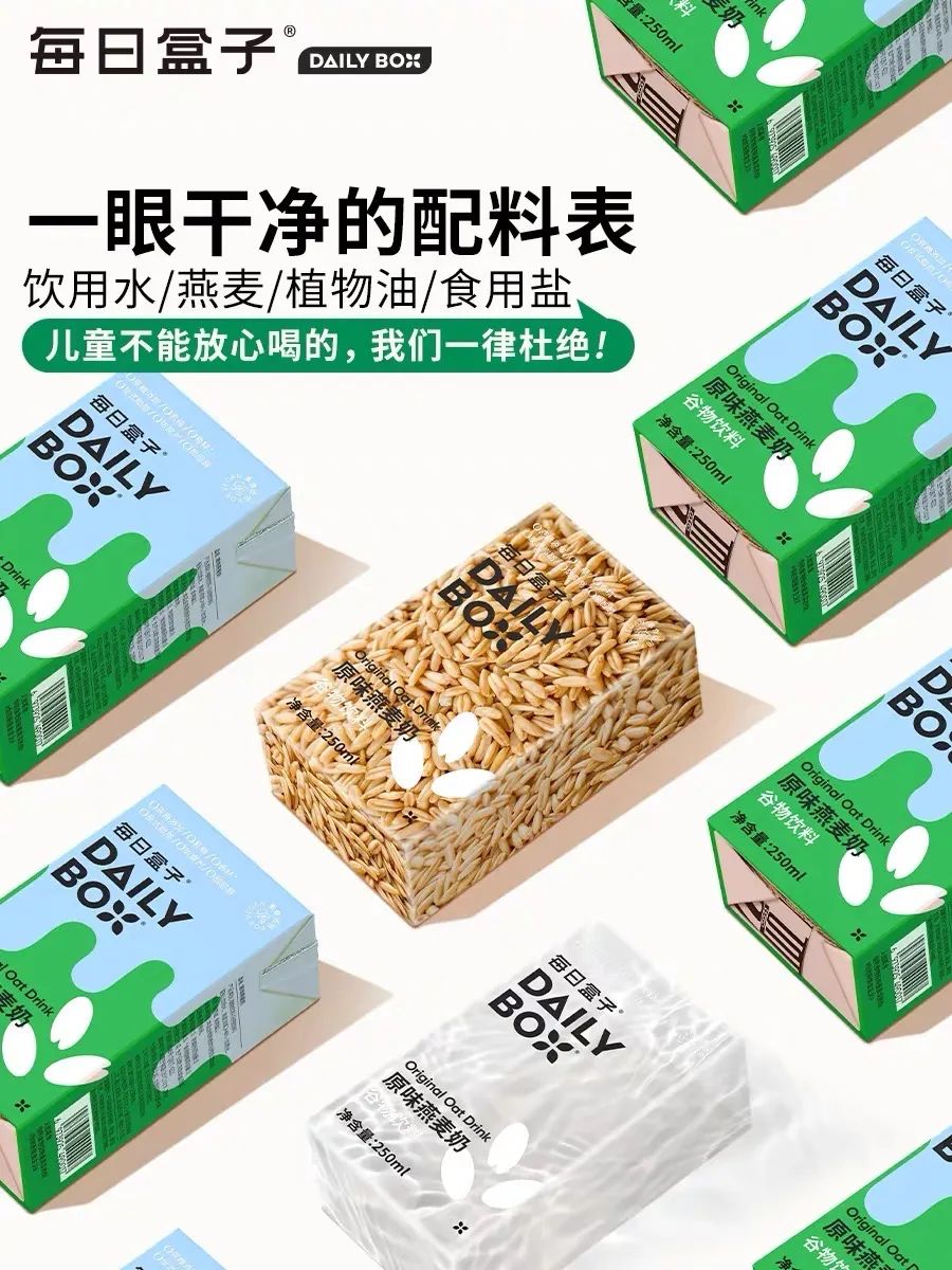 每日盒子的CEO曾经探索过轻食和外卖咖啡市场,发现了燕麦奶这一都市丽人新型刚需(bushi),打开每日盒子的淘宝旗舰店,就会发现他们真的在专注燕麦奶——只有三个产品:原味燕麦奶、可可味燕麦奶和榛果燕麦奶。这么专一,有被感动到。
