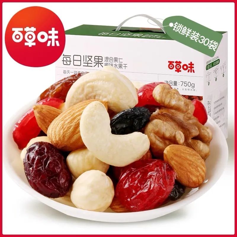 出这种混合坚果的牌子也很多了,除了百草味还有中粮、三只松鼠等等,可以根据偏好自行选购。每天一小袋也特别便携,混着酸奶吃那也是极好的喔~