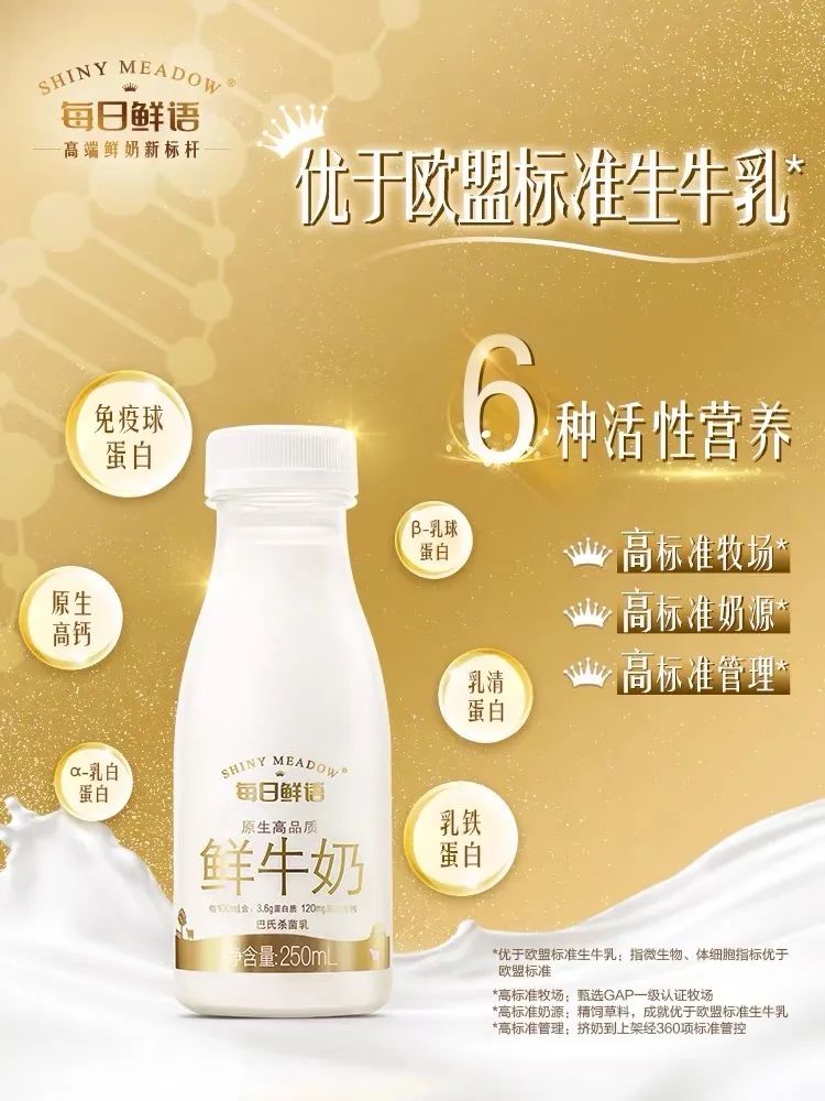 每日鲜语其实就是蒙牛的“高品质奶”产品线,打出的旗号就是一个“鲜”字。巴氏消毒鲜奶,保质期不超过15日,就好像小时候每家门口都会挂一个奶箱,每天早上有人来送的鲜奶一样,最佳食用时间就是当天送到、当天喝完,否则需要冷藏保存。