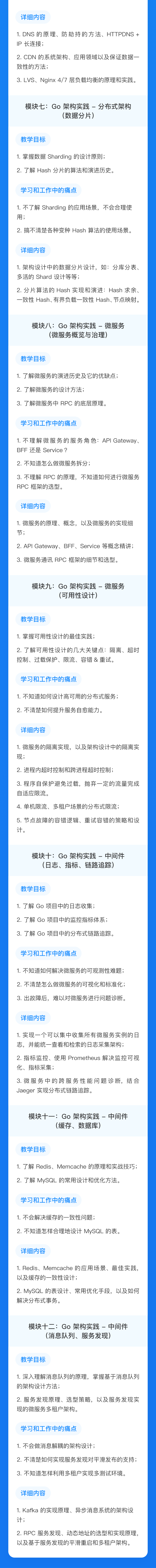 整个训练营的内容,可以分为三大模块,先是 Go 语言编程实践、再到工程实践、最后是架构实践。