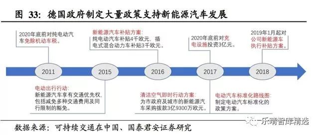 龙头企业均已制定完整计划目前的大众、宝马、戴姆勒均已达到欧盟要求的标准,同时几家巨头已经对未来的新能源汽车发展有完整规划。