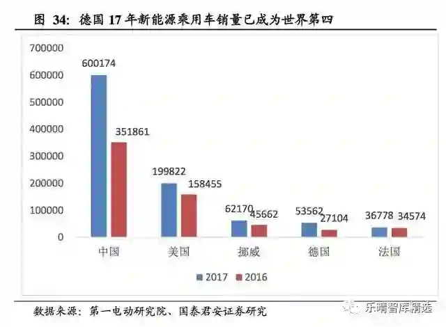 2017年德国新能源(纯电动+插电式混合动力)乘用车销量创历史新高,达53562辆,位居世界第四,国内市场份额提升至1.6%。