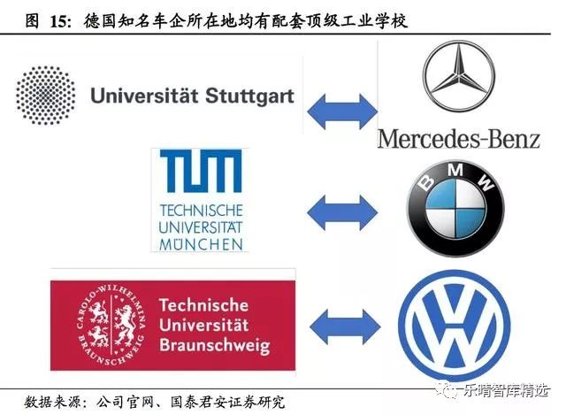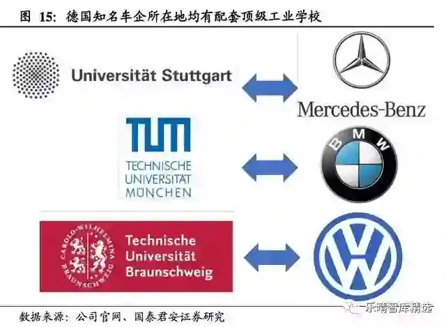 德国汽车产业的成功离不开高校的支持,戴姆勒公司所在地斯图加特拥有TU9成员之一斯图加特大学,该大学汽车工程专业位列德国第一;