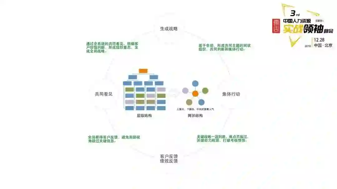 第一个,生存战略。通过全系统的共同看见,明确客户的价值判断,形成组织意识,生成全局战略。