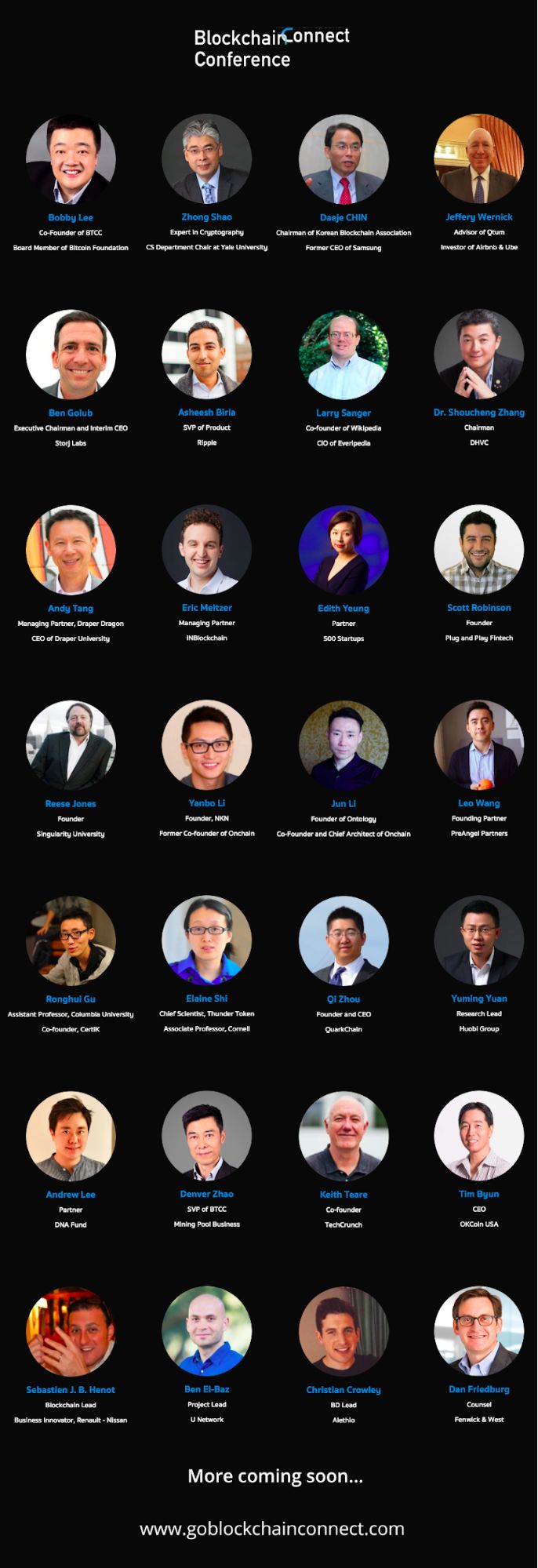 重量级嘉宾包括:比特币中国(BTCC)创始人 Bobby Lee;Qtum 顾问,Airbinb和Uber的早期投资者 Jeffery Wernick;耶鲁大学计算机系教授及系主任邵中;正在筹划神秘区块链项目的TechCrunch 联合创始人Keith Teare。