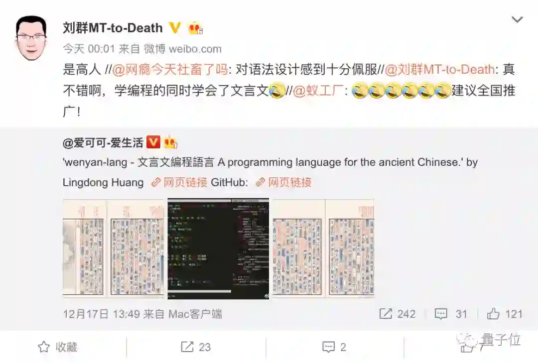 而文言文编程语言,大抵是少年迄今最为骄傲且最为瞩目之成就。