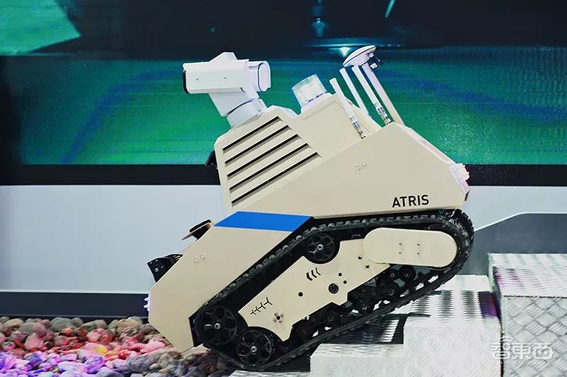 在安防展上,国内人工智能独角兽、人形机器人企业优必选的展台围满了专业观众。搭建的展台中央有两台智能巡检机器人ATRIS(安巡士),优必选还为其搭配了用于全地形演示的模拟路面环境,台阶、斜坡、石头。