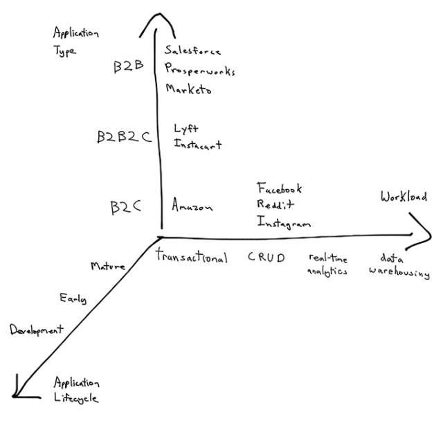 在 Citus,我们发现大部分用户都有自己的应用程序。应用程序越是成熟,Y 轴就显得越为重要。不过这个维度不如其他两个维度那么具有识别度。