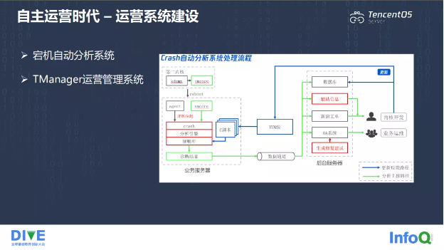我们也开发了很多运营系统来管理维护服务器 OS,比如我们研发了宕机自动分析系统。我们的系统可用率可能是非常高的,比如系统可利用率能够达到 4 个 9、甚至 5 个 9 以上,但是因为基数太大,服务器有几百万台,每周还是有上百台的机器宕机,如果一台一台去分析宕机原因,非常耗时耗力。因此,我们研发了宕机自动化分析系统,机器因系统问题导致宕机时,会自动进入第二内核,第二内核会启动 kdump 服务去生成 vmcore,然后自动重启,系统重新开机时会去把 Agent 拉起,Agent 会自动查找有没有生成 vmcore 并进行分析处理,然后对比一些引擎和库,最终给出诊断结果,发给所有 OS 开发人员、机器负责人,告知宕机时间、原因以及修复建议。如果是未知问题,自动分析系统无法分析宕机原因,OS 开发人员就要去介入,手动分析宕机原因,给出修复补丁,一方面制作热补丁去修复,另一方面合入新内核,升级操作系统去解决。