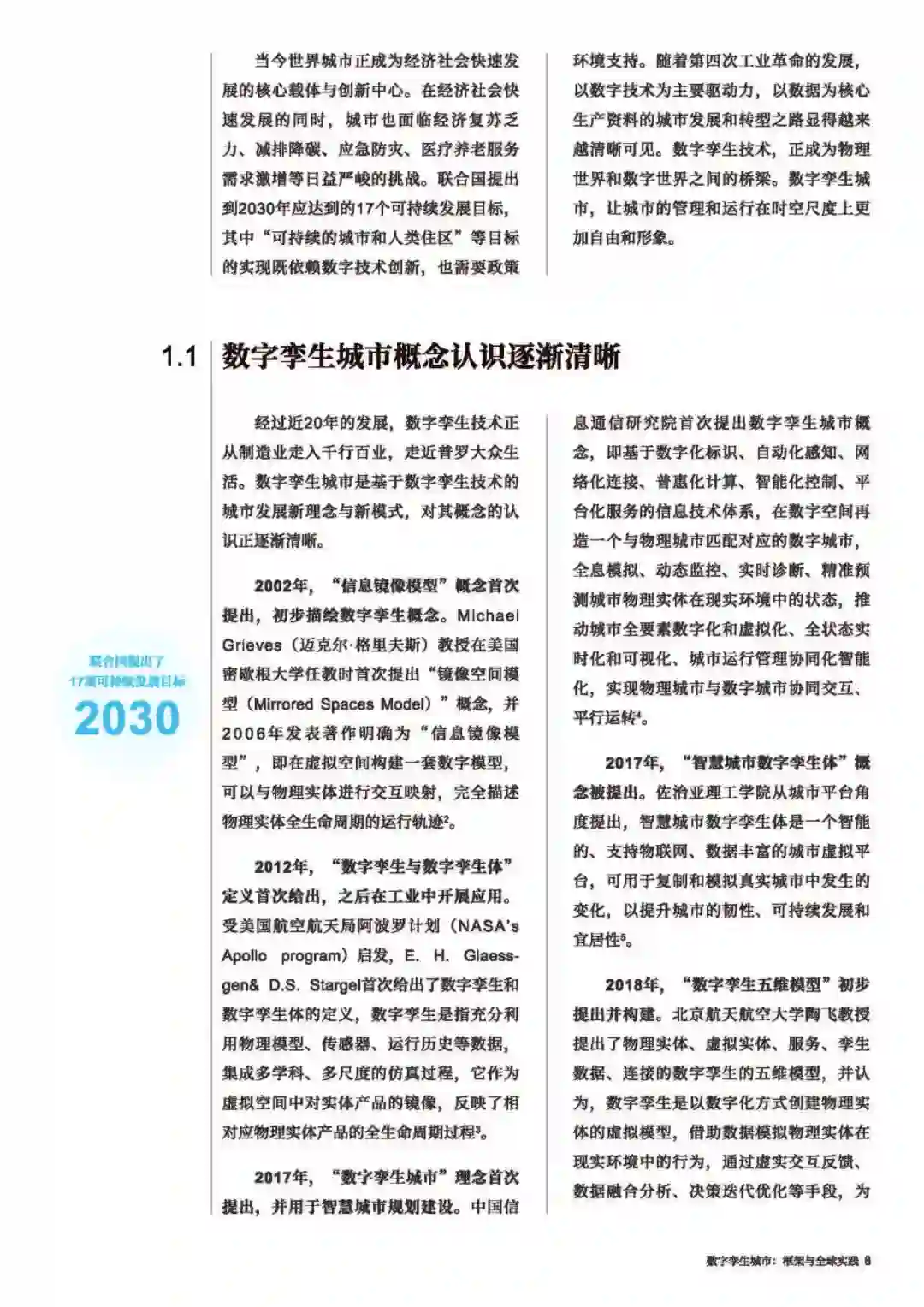 数字孪生城市追求三个愿景:1)更加集约高效的城市生产经营;2)宜居便捷的城市生活空间;3)可持续的城市生态环境。