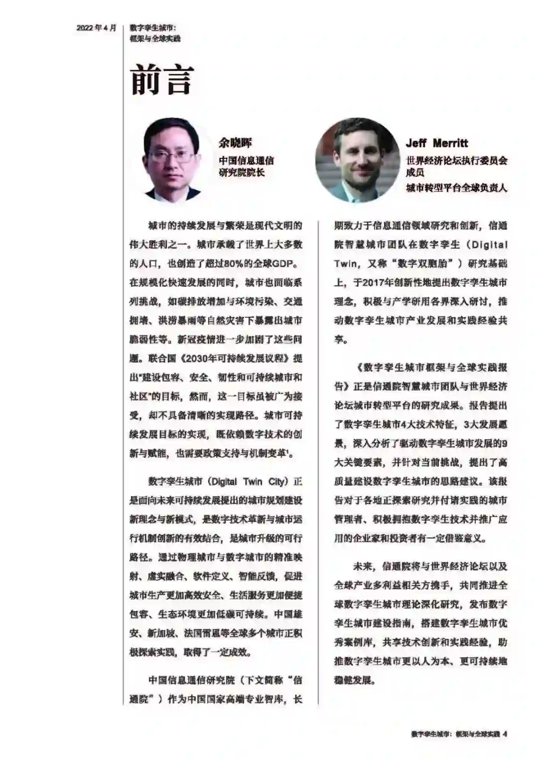 世界经济论坛(WEF)发布了《2022年数字孪生城市框架与全球实践洞察报告》。