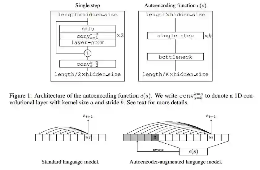 摘要:Recurrent models for sequences have been recently successful at many tasks, especially for language modeling and machine translation. Nevertheless, it remains challenging to extract good representations from these models. For instance, even though language has a clear hierarchical structure going from characters through words to sentences, it is not apparent in current language models. We propose to improve the representation in sequence models by augmenting current approaches with an autoencoder that is forced to compress the sequence through an intermediate discrete latent space. In order to propagate gradients though this discrete representation we introduce an improved semantic hashing technique. We show that this technique performs well on a newly proposed quantitative efficiency measure. We also analyze latent codes produced by the model showing how they correspond to words and phrases. Finally, we present an application of the autoencoder-augmented model to generating diverse translations.