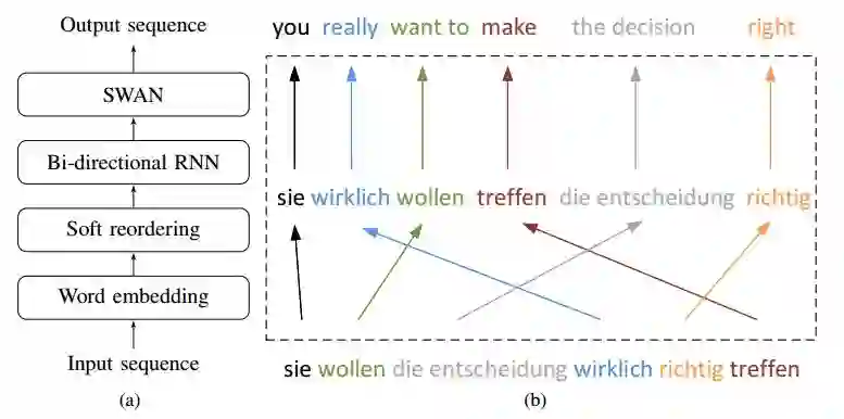 摘要:In this paper, we present Neural Phrase-based Machine Translation (NPMT). Our method explicitly models the phrase structures in output sequences using Sleep-WAke Networks (SWAN), a recently proposed segmentation-based sequence modeling method. To mitigate the monotonic alignment requirement of SWAN, we introduce a new layer to perform (soft) local reordering of input sequences. Different from existing neural machine translation (NMT) approaches, NPMT does not use attention-based decoding mechanisms. Instead, it directly outputs phrases in a sequential order and can decode in linear time. Our experiments show that NPMT achieves superior performances on IWSLT 2014 German-English/English-German and IWSLT 2015 English-Vietnamese machine translation tasks compared with strong NMT baselines. We also observe that our method produces meaningful phrases in output languages.