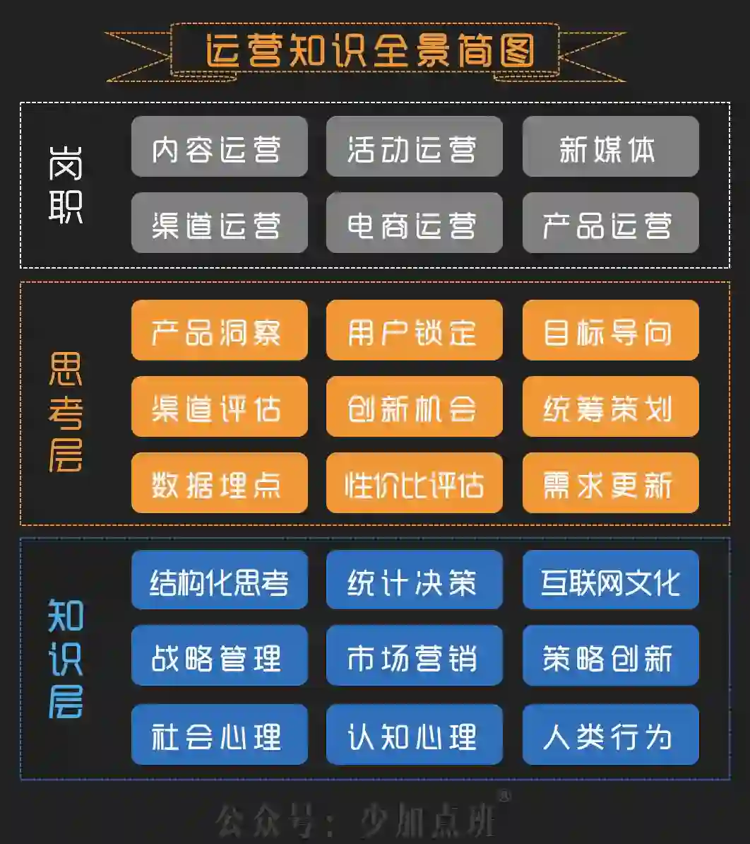 这个问题,业界非常多的文章有谈到过。李少加本着“无价值不探讨”的原则说明下:目前更偏向于讨论运营岗职“业务层面”的问题,这恰恰是最简单也最表面的。