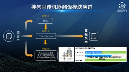 这是搜狗机器翻译模块的演进过程。1.0 时代,搜狗同传采用 RNN 模型结构,这种模型结构能记住文本的历史信息,但同时存在一些问题,固有的顺序属性不仅阻碍了训练样本间的并行化,而且存在梯度消失或者爆炸问题,对历史记忆能力欠佳2.0 时代,机器翻译模型升级成为Transformer,这种模型自注意力机制,很好的解决了远程依赖性。