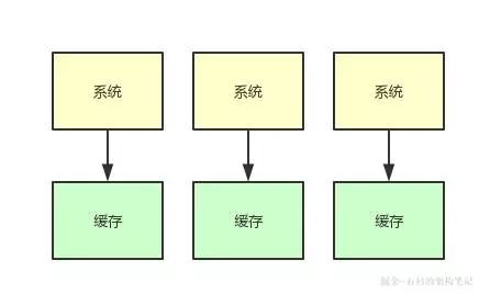 我们先来看看下面一幅图,假设你手头有个系统,他本身是集群部署的,然后后面有一套缓存集群,这个集群不管你用 Redis Cluster,还是 Memcached,或者是公司自研缓存集群,都可以。