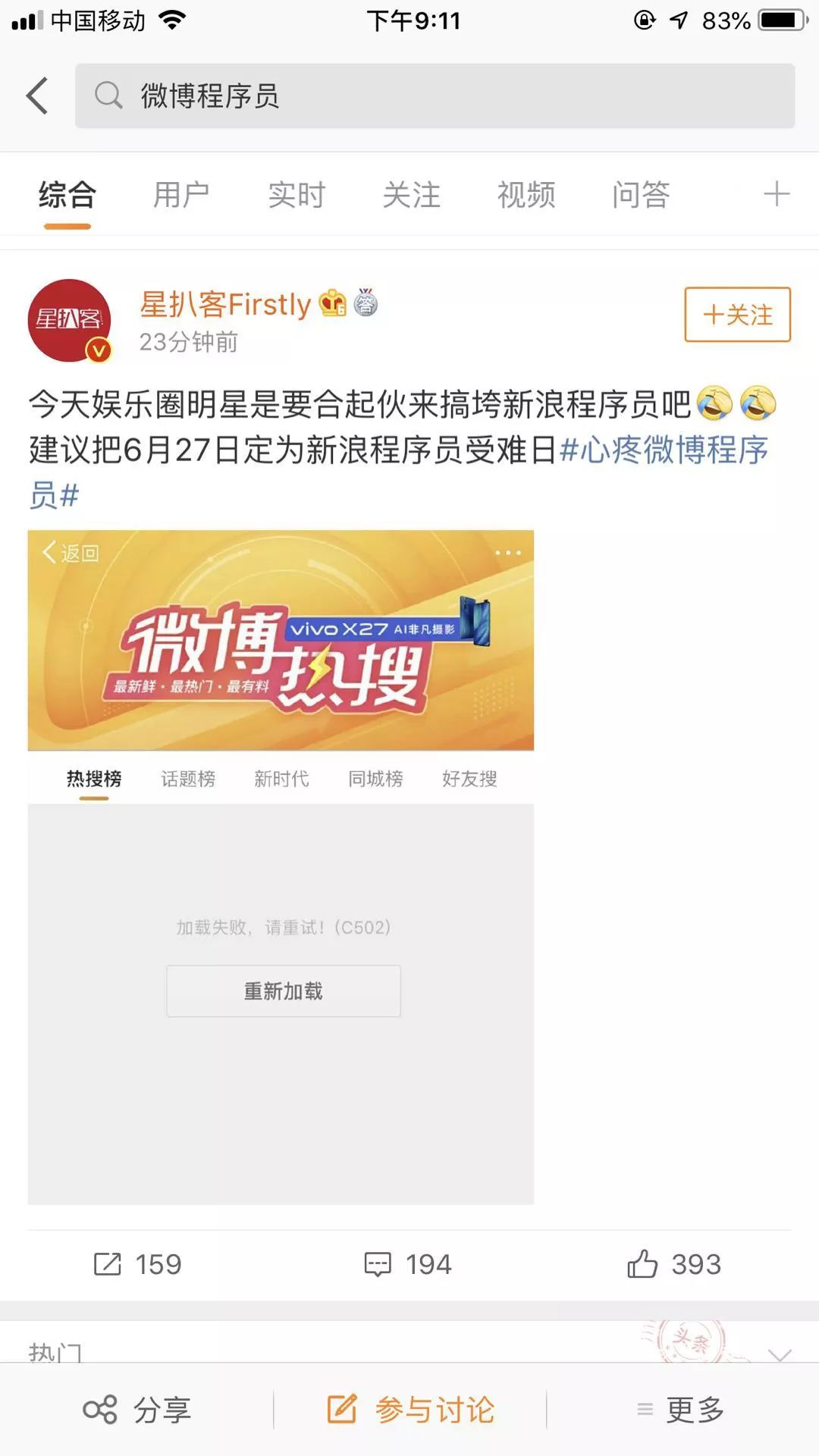 6 月 27 日,微博再次宕机,因为一连出现 3 个热点新闻:双宋离婚、宝强母亲去世、李晨范冰冰分手。广大网友可能更多关注的是新闻本身,纷纷留言评论发表自己看法。