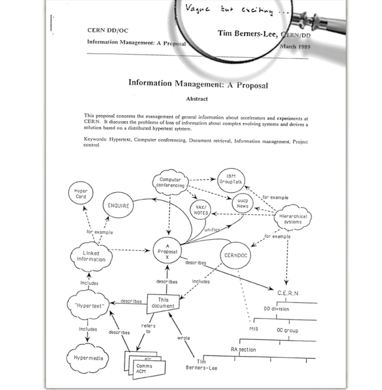 当年Tim Berners-Lee所提交的提案,图片来自于欧洲粒子物理研究所(CERN)