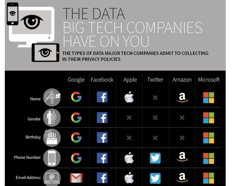 比如谷歌记录你的搜索痕迹,Facebook、Twitter记录你的人际关系和互动,亚马逊记录你的购买记录等等。这些科技型巨头通过大量的数据来获取利益,算法掌控了你的世界。