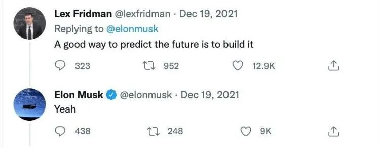 马斯克曾在转发比尔盖茨1995年谈论互联网的视频时发问,“考虑到当下几乎不可想象的性质,未来会是什么样子?” 接着,他赞同了一个网友的回答——“The good way to predict the future is to build it。”