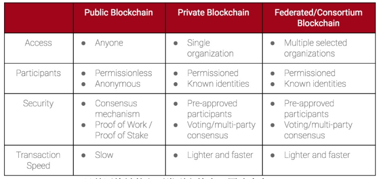 目前区块链的主要类型和特点,图片来自Quora