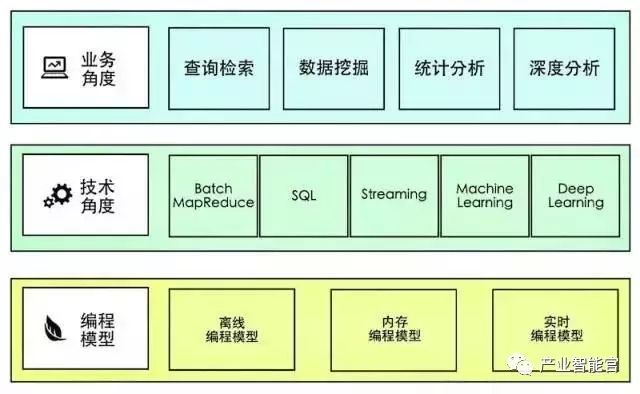 编程模型中的离线编程模型以Hadoop的MapReduce为代表,内存编程模型则以Spark为代表,实时编程模型则主要指的是流处理,当然也可能采用Lambda架构,在Batch Layer(即离线编程模型)与Speed Layer(实时编程模型)之间建立Serving Layer,利用空闲时间与空闲资源,又或者在写入数据的同时,对离线编程模型要处理的大数据进行预先计算(聚合),从而形成一种融合的视图存储在数据库中(如HBase),以便于快速查询或计算。