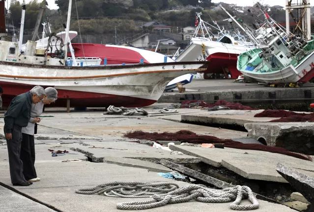 2011年4月,明仁天皇和美智子皇后为311地震和海啸遇难者祈祷