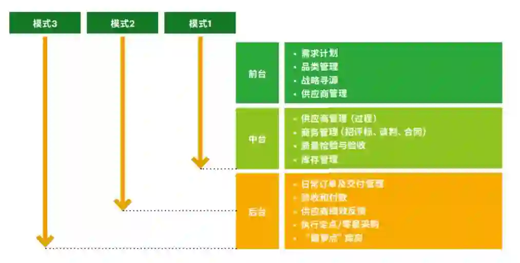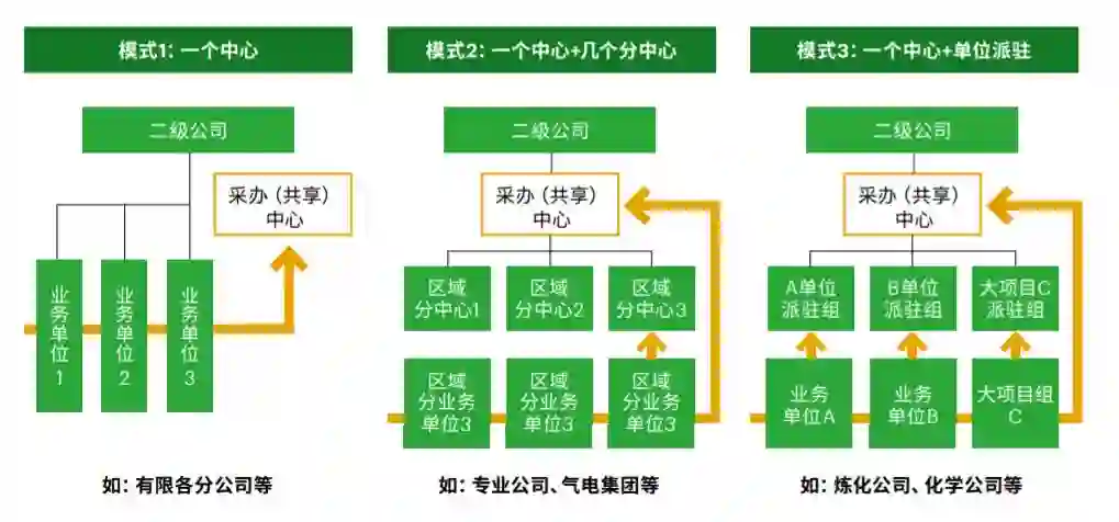 在埃森哲的帮助下,中海油在二级单位设立采办共享中心,全面实现了中海油采办部由商务管理向供应链管理职能的转变、从采办计划向供应链综合计划职能的转变。采办共享中心总体职责是提供高效采办,保证及时供应,包括采购计划的整合与快速响应、采购标准化、建设物料超市电商平台,实施低值高频次物资采购、寄存寄售、联储共备、快速的物流响应。为此,采办共享中心采用了“品类管理”与“前中后台”相结合的三种职能划分模式。