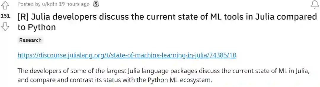 近日,reddit 上的一则热帖引来广大网友的讨论,这个帖子提到,最近,一些 Julia 语言包的开发人员讨论了 Julia 中 ML 的当前状态,并将其状态与 Python ML 生态系统进行了比较。