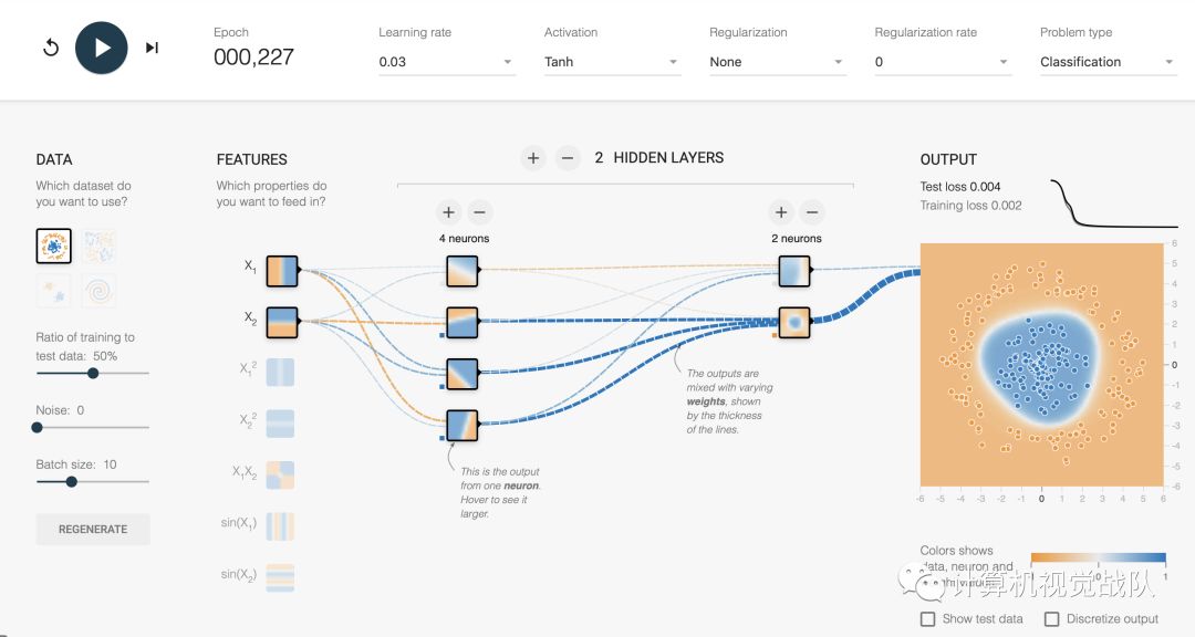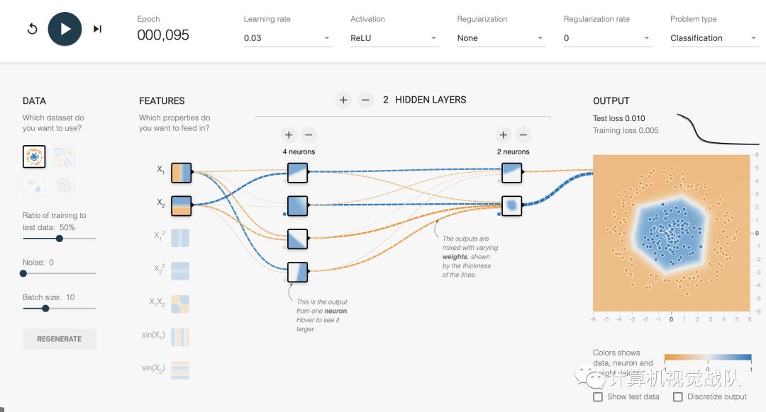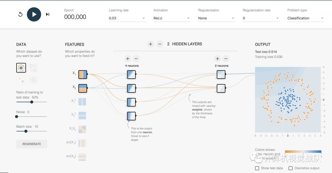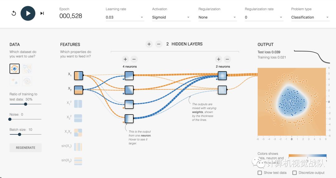 本次试验在playground界面进行实验,想必很多同学对这个小平台有很深入的理解。以2分类解释:
