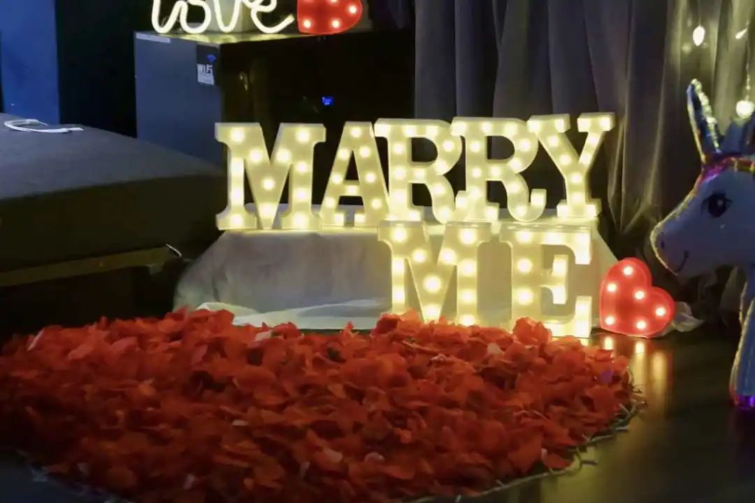 。而房间 B 早已布置好了求婚的花瓣、气球,也准备好了求婚的回忆影片。当天,在主人公到场之前,亲友们就已经提前到场布置好求婚的房间。