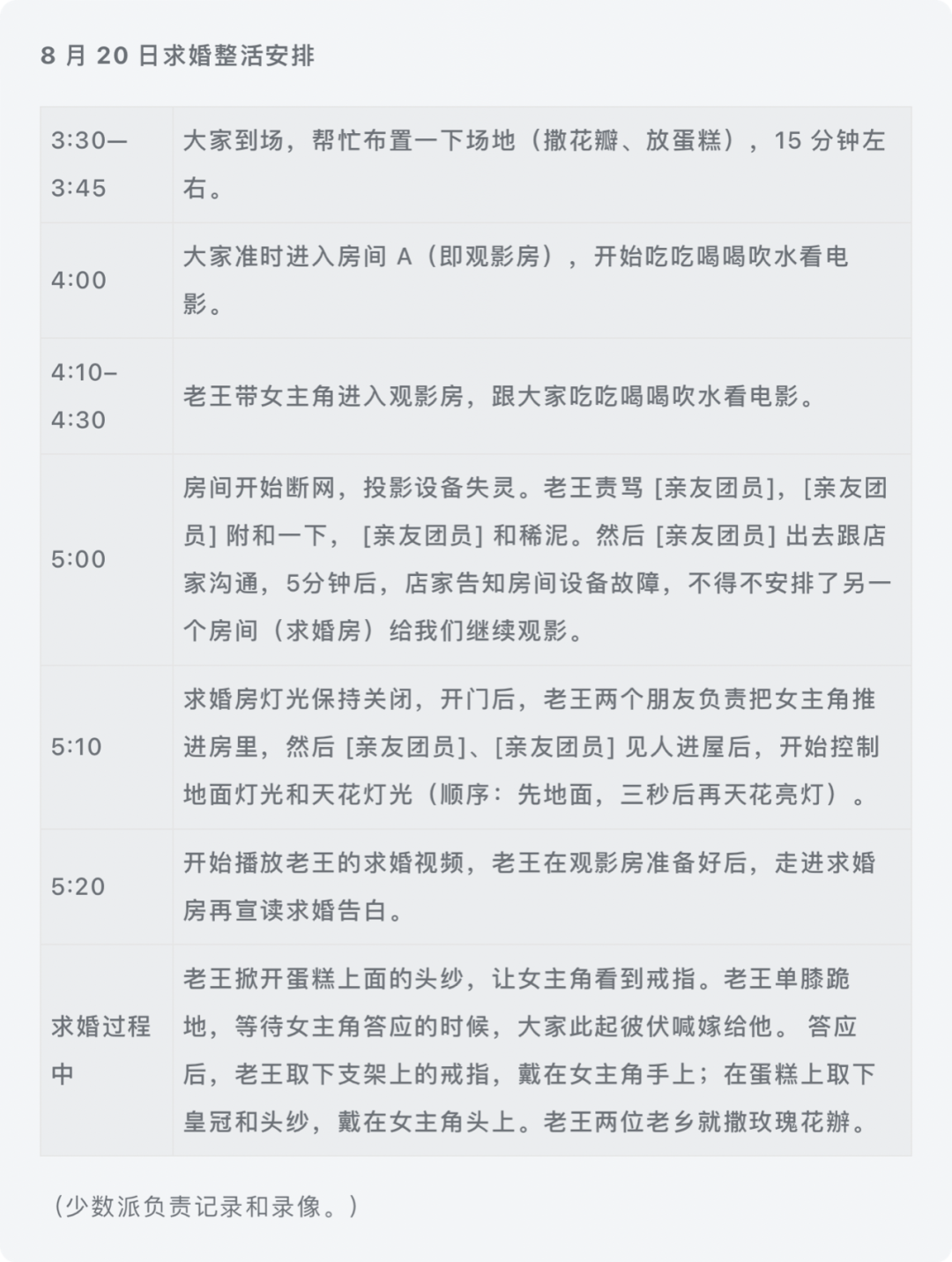为此,@胖叔Leonard 和亲友们还特地准备了一个文档,详细地安排了当日的流程。