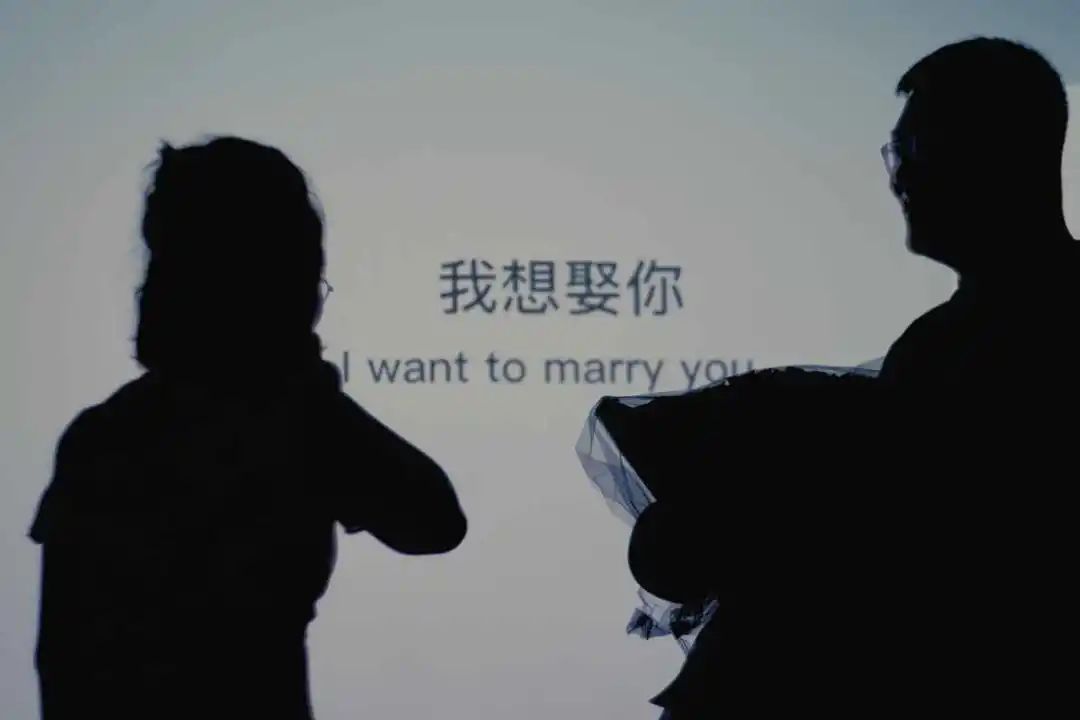 当影片放完,画面上浮现出了一段段字幕:「我想娶你」「我想跟你一起面对未来」「但是你一直在忙,闲不下来」「嫁给我好吗」……@胖叔Leonard 接过亲友递来的花束,单膝下跪,等待女生的应许。