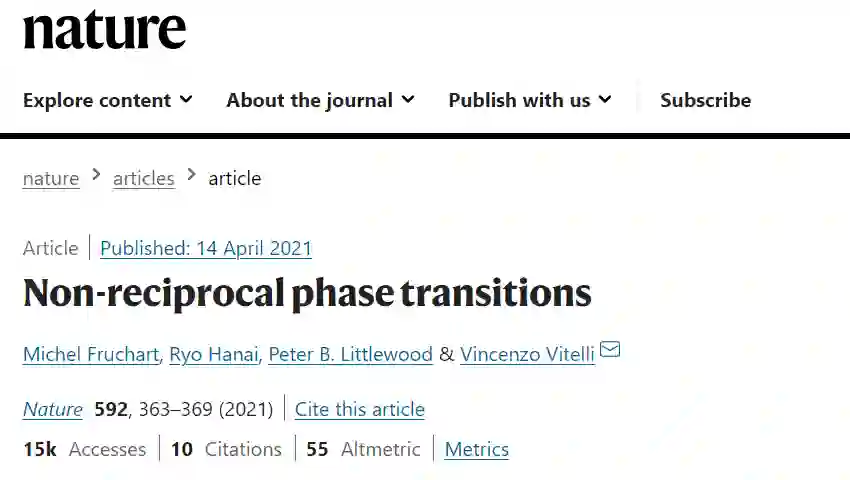 在这类系统中,牛顿第三定律就没有那么绝对了:「大小相等、方向相反」的说法会被打破。「假设有两个粒子 A 和 B,A 与 B 交互的方式不同于 B 与 A。」芝加哥大学凝聚态理论学家 Vincenzo Vitelli 解释说。这种非互易关系出现在神经网络、流体系统粒子,甚至社会群体等系统中。例如,掠食者会吃猎物,但猎物不会吃掠食者。