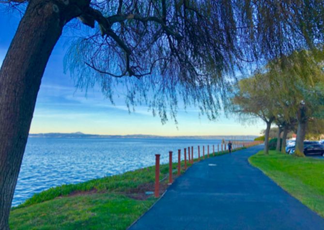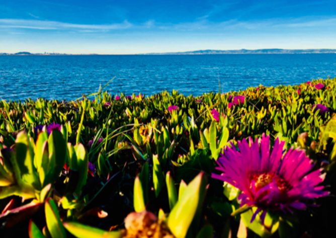Bay area(湾区)有一片美丽的海湾,深蓝色的海水,没有雾霾的空气,沿海的步行小道,漫步其中,随手拍出的照片都是秀美的风光。硅谷、伯克利和斯坦福都围绕在这片美丽的海湾。这里气候四季如春,全年最高气温只有20多度,最低气温也是10多度。