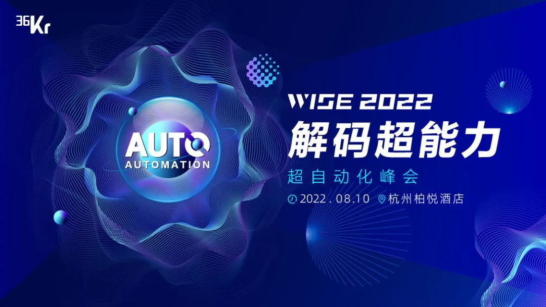 为了帮助从业者更好地把握趋势,交流行业观点,今年8月10日,我们将在杭州柏悦酒店举办「WISE2022解码超能力——超自动化峰会」,欢迎参与。