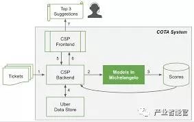 1. 客服工单进入客户支持平台(CSP),后端服务系统采集工单的相关特征;