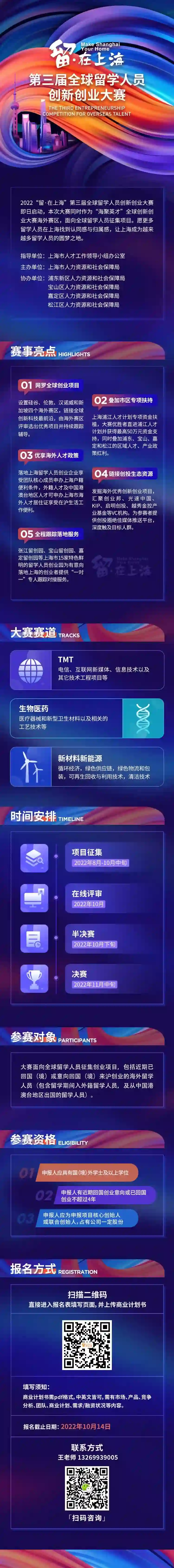 为了继续为海外留学人员到上海创新、创造、创业营造更好的环境和条件,2022“留·在上海”第三届全球留学人员创新创业大赛即日启动。面向全球留学人员征集项目。为上海的科技产业和区域经济发展筛选出一批批科技创新的种子,也将更多的阳光雨露引导向这些种子,为他们营造良好的成长环境。