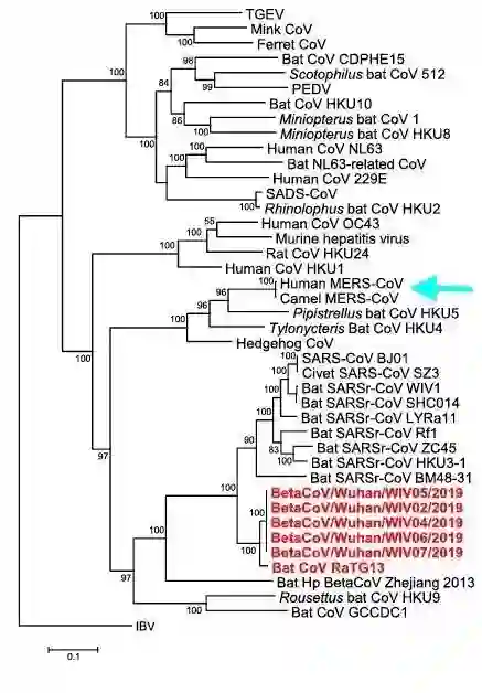 在第一个2019-nCoV序列问世后,研究人员将其放置在已知的冠状病毒的族谱上,发现它与蝙蝠的亲缘关系最为密切。1月23日,由武汉病毒所冠状病毒专家石正丽领导的研究小组在bioRxiv上报道,2019-nCoV病毒序列与蝙蝠病毒相似,为96.2%,与导致严重急性呼吸系统综合症(SARS)的冠状病毒相似度为79.5%。SARS也是17年前在中国爆发的。SARS冠状病毒与蝙蝠病毒有着相似的密切关系,而序列数据提供了一个有力的证据,证明它是从果子狸的冠状病毒跳到人体内的,而果子狸与人类的SARS病毒相差只有10个核苷酸。这就是为什么许多科学家怀疑在蝙蝠和2019-nCoV之间存在一个或多个“中间”宿主物种的原因之一。