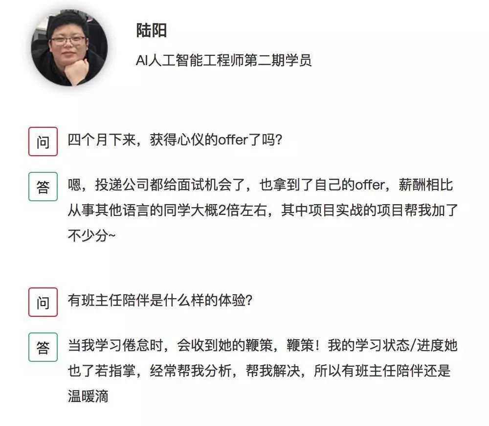 所以,与其盯着年龄的增长看着目标的职位无可奈何,不如为自己规划一个新的五年计划。如果你仍然没有思路的话,营长推荐自家学院精心为程序员重磅打造的《人工智能工程师》计划。